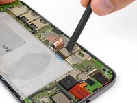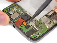 Use your spudger to disconnect the display by prying its connector straight up from the motherboard, on the edge nearest the side of the phone.