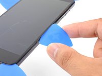 Insert an opening pick into a bottom corner and slice towards the home button, stopping before you reach it.
