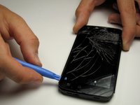 Slowly work your way around the phone, using the plastic opening tool to separate the glass from the phone.
