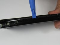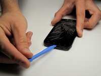 Using a plastic opening tool, carefully pry up the bottom of the display glass.