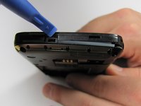 Gently lift the tab located at the bottom of the phone with the same tool.