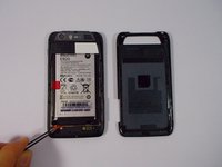 When all the edges have been lifted apart, use your hands or plastic opening tool to peel the back plate from the battery. There are small adhesive strips between the back cover and the battery, so take care not to crack the back cover while prying open.
