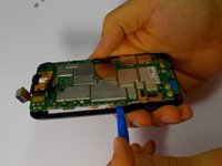 Begin by removing the back cover using the plastic opening tool. There are adhesive strips attached to the back cover, so take care when prying case to prevent cracking