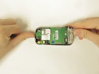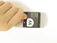 Remove the battery by pressing on the edge of the battery from the top of the phone towards the bottom and lifting up.