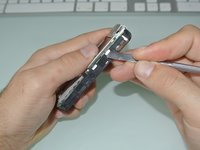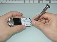 Use a metal spudger to pell off the four metal clips and separate the motherboard and keyboard from the main plastic part.