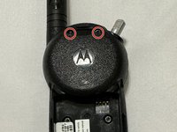 There are two T8 screws hidden under this strap hole at the top of the radio.
