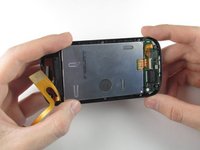 Pry off the flex cable located at the top right of the display assembly using the flat end of a spudger.