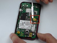 Use a plastic opening tool to pry the battery out of the phone.