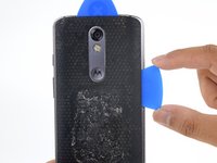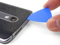 Angle an opening pick and firmly press so that it slips under the back cover.