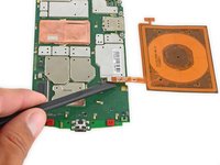 Use the flat end of a spudger to disconnect the wireless charging coil connector from the motherboard.