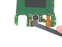 Use the flat end of a spudger to flip up the tan retaining flap on the rear-facing camera ZIF connector.