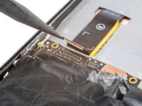 Use the pointed end of a spudger to pry up and disconnect the display cable's press connector.