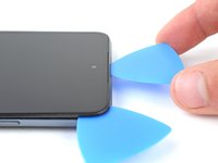 Slide the opening pick along the bottom edge of the phone to slice the adhesive.