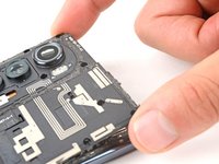 Use tweezers to peel back the tape that connects the front camera to the motherboard.