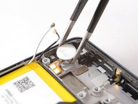 Use the spudger to push the antenna up and away from the phone until the cable is freed from the clip securing it to the daughterboard.