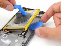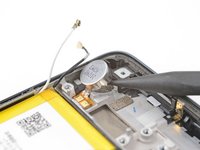 Insert the pointed end of a spudger underneath the tape that connects the wireless charging coil to the speaker on the bottom left of the phone.