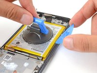Slowly lift the spudger up until the tape detaches from the speaker.