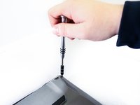 Flip over the Lapdock and remove the four 3.5mm long phillips head screws from the bottom.