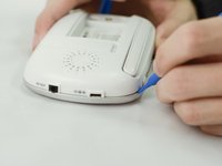Using the blue plastic opening tools, begin prying open the corners and disconnecting the seven clasps around the edges of the parent unit.