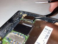 Wow! There sure are a lot of connections to the screen! Let’s remove them! Use tweezers to lift the metal connector, lift the black lever on the plastic connectors and pull out the wires, and lift the maroon plastic connector. The two black plastic connectors connect the small front screen and the camera, so you will remove these after the wires.