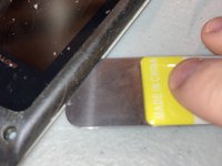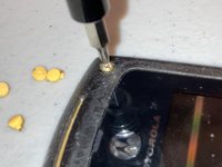 Phew! We’ve done a lot of work on the bottom of the phone. Let’s go to the top with the screen! First, use tweezers to remove the yellow rubber coverings over the screws, then use your T5 Torx driver to remove all four screws. Now work your way around the screen edge with an opening tool, then lift the cover!