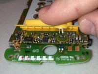 If we flip over the board, there are some removable parts. 1: The rubber keypad buttons. Simply pull them off as they are only glued a little. 2: The phone call mic. Pull up on the little yellow strip of rubber to remove. Don’t panic when you see the bottom of the mic, it looks like you pulled out the soldering, but you didn’t, just a connector!
