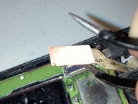 Now back to the phone. We are now at the circuit board. There is one connection to the screen on the back of the board (see pictures). We need to separate it from the board. Use tweezers to carefully lift the click connector. Next, there are two clips on the board. Use tweezers to push one in, then push the other in and lift the board.