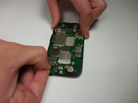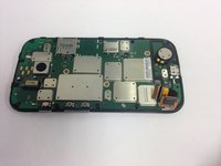 Gently lift the back plate away, exposing the motherboard. The battery will be stuck to the back of the cover, so be careful when lifting it off.