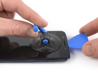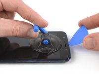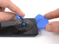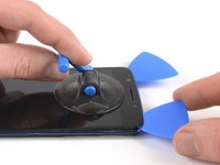 Pull up the suction cup, and insert an opening pick under the display.