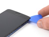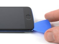 Slide the opening pick to the top left corner of the phone to cut the adhesive.