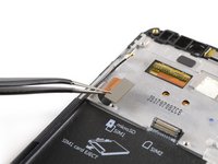Use a pair of tweezers to peel both display flex cables off the frame. They are located on the bottom left and at the top of the motherboard.