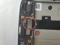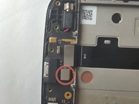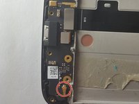 Use the Spudger to lift up and remove the Signal Flux Cable, circled in picture, from the Cable Port. The Signal Flux Cable should still be connected to the side of the phone, but detached from the charging port.