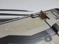 • Use the Precision Tweezer to detach the Power and Volume Buttons Flex. Start at the lip of the phone, as seen in Image 2, and lift up. Slide the precision tweezers under the power and volume buttons flex until you reach the gold plated section, detaching it from the phone.