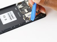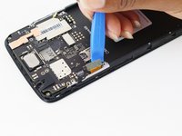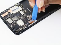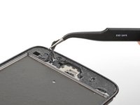 Disconnect the antenna cable by sliding a plastic pry tool or fine tweezers under the wire close to its socket, and then prying straight up.