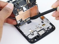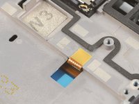 Use a spudger or other fine-tip pry tool to pry off and disconnect the last remaining ribbon cable on the underside of the motherboard.