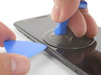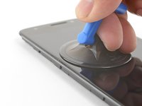 Apply a suction cup to the screen, near the heated edge of the phone.