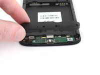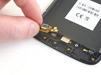 Use your fingers or a pair of tweezers to lift and de-route the antenna cable from its groove on the right edge of the phone.