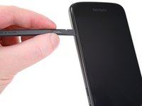 Insert an opening tool into the seam on the right side of the phone near the top.