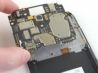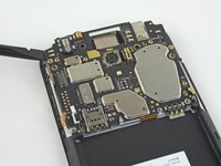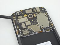 Insert the flat end of a spudger underneath the motherboard, anywhere near the top edge of the phone.