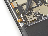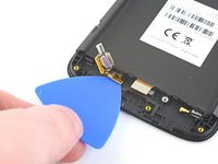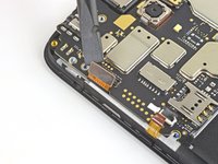 Use an opening pick to carefully slice the adhesive underneath the vibration motor's contact pads.