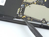 Use the point of a spudger to lift up the locking mechanism securing the ribbon cable to the ZIF connector.