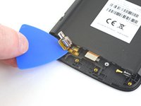 Slide the pick along the underside of the cable, slicing the adhesive and removing the cable from the phone.