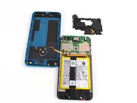 • The bottom plastic piece covering the daughterboard can be seen by peeling back the tape covering the bottom section of the phone below the battery.