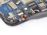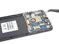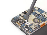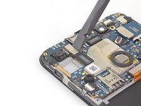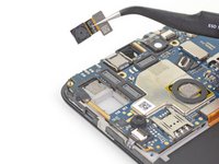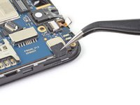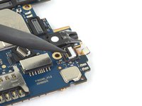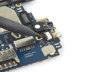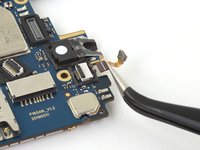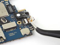 Use a pair of tweezers to peel back the tape securing the front camera to the motherboard.