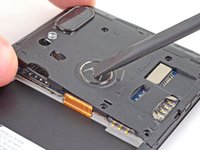 Use an opening tool to release the clip next to the rear cameras.