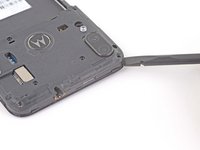 Use an opening tool or your fingernail to pry the back cover away from the frame using the notch at the bottom right corner.