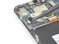 Use a pair of tweezers to peel off the tape covering the left motherboard screw.