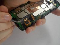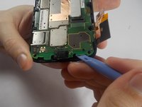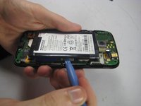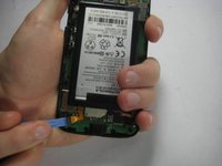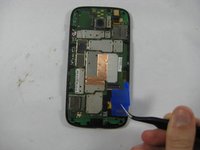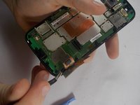 Use the plastic prying tool and slowly work around the edges of the phone to detach the screen from the motherboard.