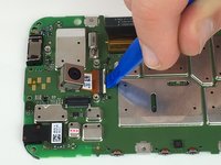 If adhesive residue is holding the motherboard in place, use a Jimmy to cut the adhesive between the motherboard and the back of the phone.