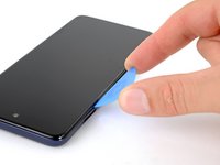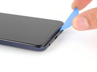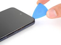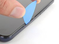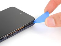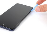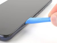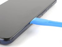 Insert an opening tool in the bezel seam halfway between the bottom-right corner of the phone and the power button.